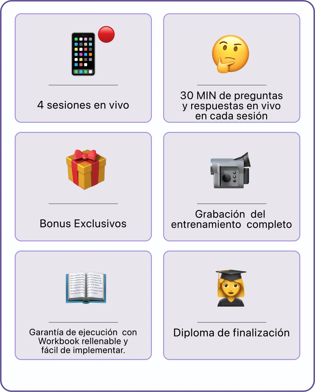 El bootcamp es en vivo, tendrás acceso a la grabación y a todo el contenido de los bonus de por vida. Así que podrás repasar el contenido cuantas veces quieras.